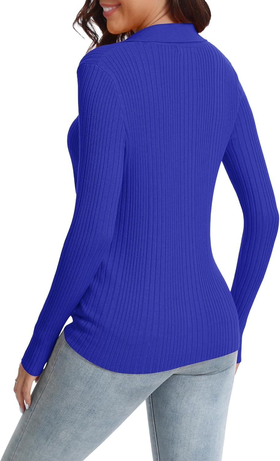 Urban CoCo Women's Long Sleeve Button Up Sweater Polo Shirt Collared Knit Cardigan Sweaters(Royal Blue)